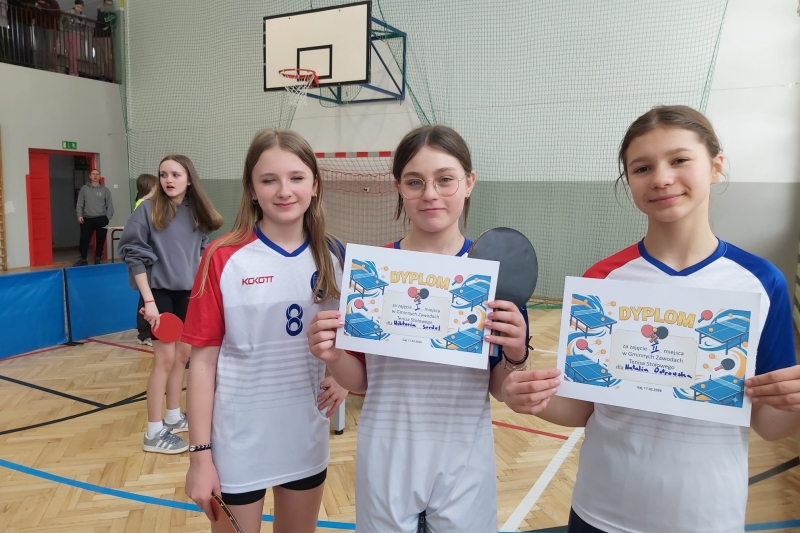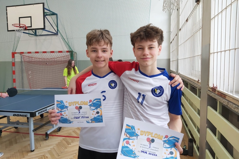 W dniu 17.02 2026 r. w Szkole Podstawowej w Gaju odbyły się Gminne Zawody w Tenisie Stołowym dziewcząt i chłopców w dwóch kategoriach wiekowych. W zawodach brało udział sześć szkół z gminy Mogilany. Naszą szkołę reprezentowało 12 zawodników: w kategorii 4-6 Wiktoria Sordyl - 1 miejsce, Natalia Ostrowska - 2 miejsce, Aleksandra Barszczak - 4 miejsce, Hubert Daraż - 5 miejsce, Jakub Syrek- 6 miejsce oraz Bartosz Adamczyk; w kategorii klas 7-8 Hanna Krzemińska - 1 miejsce, Anna Malada - 2 miejsce, Jakub Osieka - 1 miejsce, Hubert Stożek - 2 miejsce, Hubert Mizgalski - 4 miejsce, Szymon Daraż - 5 miejsce.