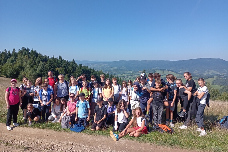 Pod koniec września klasy 6b i 8a uczestniczyły w wycieczce integracyjno-turystycznej w Gorce. Uczniowie zielonym szlakiem dotarli na Stare Wierchy, a po odpoczynku w schronisku udali się do Rabki.
