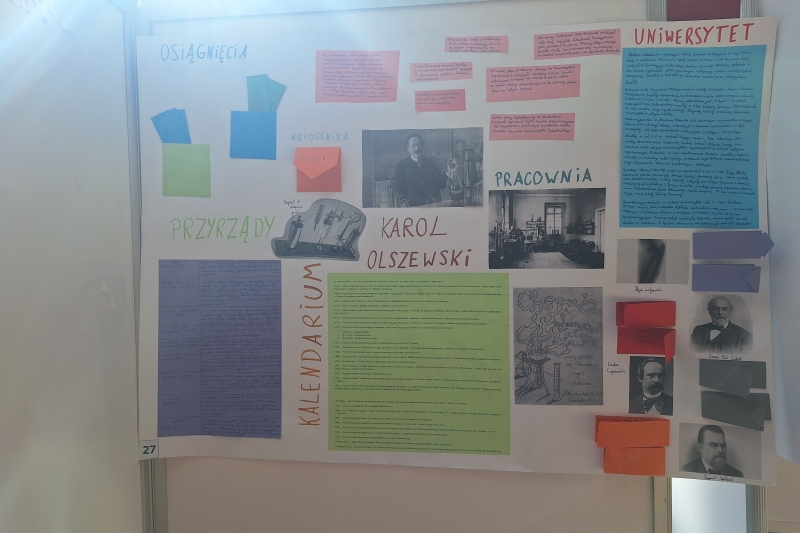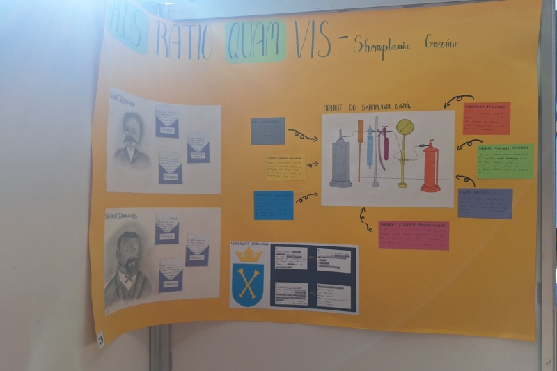 III etap tegorocznej edycji konkursu "Plus ratio quam vis" obejmował pisemny test wiedzy z dziedziny chemii i fizyki na temat powietrza, zjawisk cieplnych i właściwości materii. Uczniowie mieli wykazać się także znajomością ważnych postaci historycznych i ich dokonań: Kazimierza Wielkiego, królowej Jadwigi i Władysława Jagiełły czy Mikołaja Kopernika. Na wydziale Chemii UJ odbyła się sesja posterowa, na której zostały zaprezentowane plakaty o patronie konkursu Karolu Olszewskim, wykonane przez uczestników konkursu. Już w kwietniu poznamy laureatów. Naszą szkołę reprezentuje ośmioru uczniów z klas siódmych i ósmych. Trzymamy kciuki!