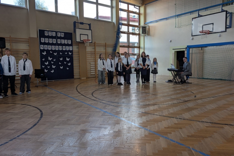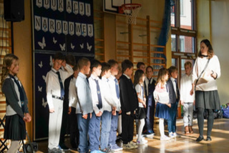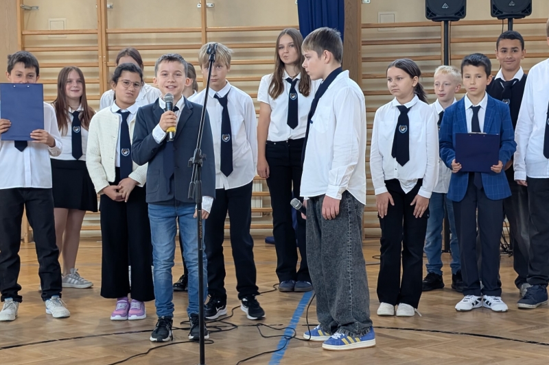 W związku z jutrzejszym świętem odbyło się uroczyste pasowanie pierwszoklasistów na uczniów naszej szkoły oraz apel z okazji Dnia Nauczyciela i Dnia Patrona Szkoły Janusza Korczaka, przygotowany przez klasę 5a i szkolny chór.