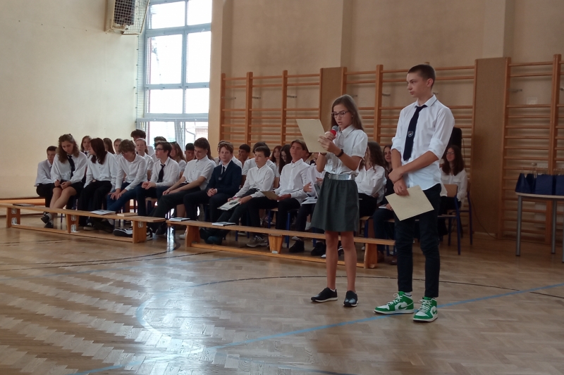 Podczas dzisiejszej uroczystości zakończenia roku szkolnego zostały wręczone Nagrody Wójta Gminy Mogilany za szczególne osiągnięcia uczniom klasy . Nagrodę Dyrektora Szkoły za wyniki w nauce otrzymali Szymon Osieka kl. 8a, Paulina Piszczek kl. 8b, Weronika Doś kl. 5a. Nagrodę Dyrektora Szkoły za osiągnięcia sportowe przyznano Ignacemu Kotewiczowi kl. 7a, Jakubowi Michalskiemu kl. 7a oraz Mai Łobodzie kl. 5a.