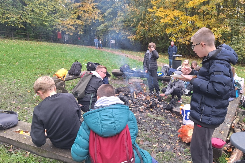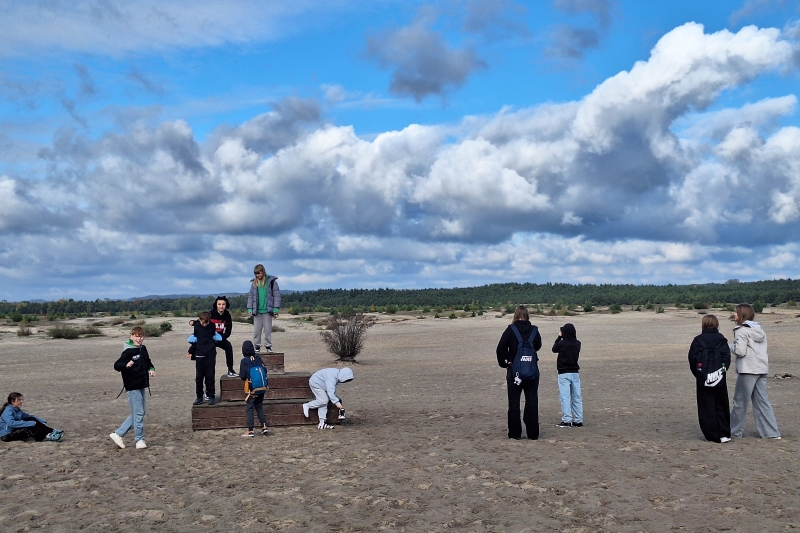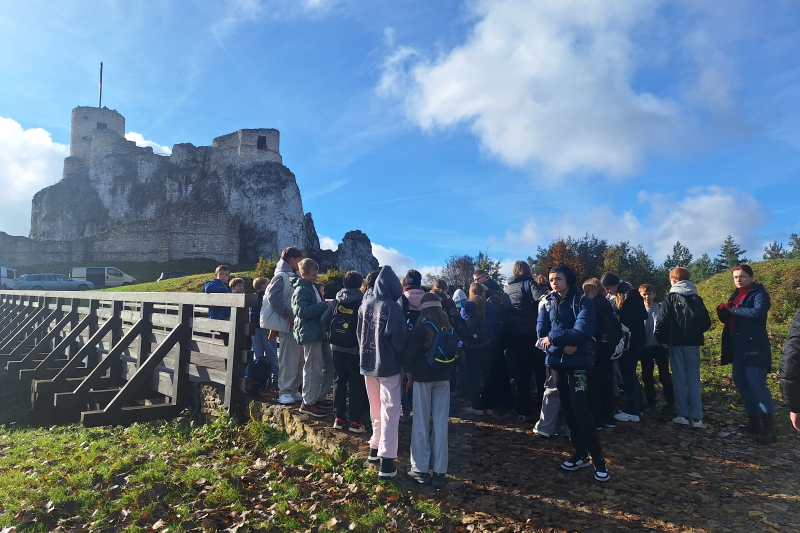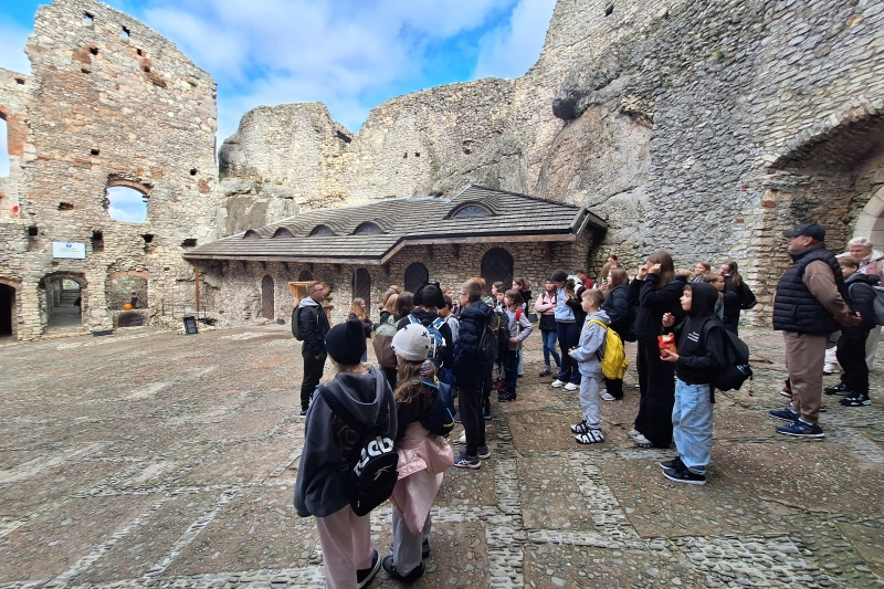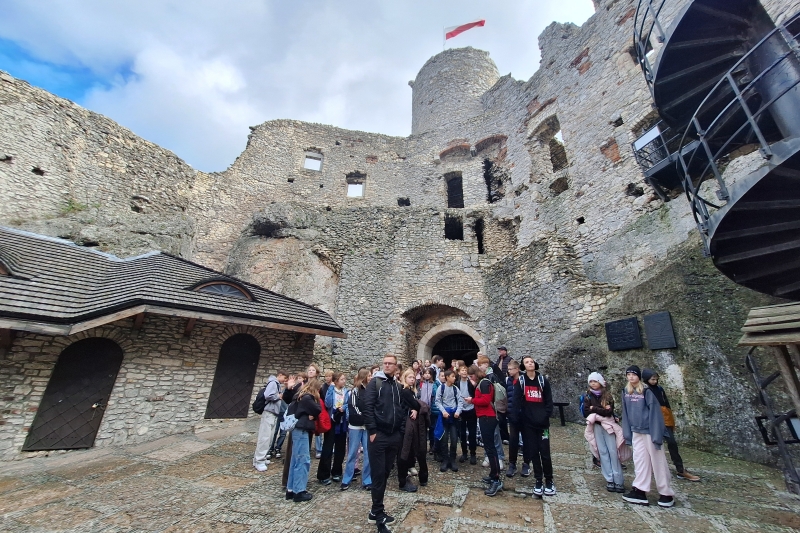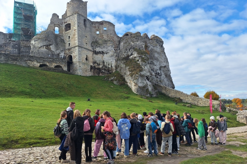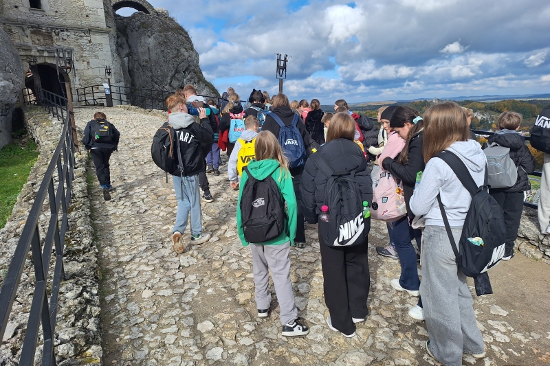 Podczas wycieczki szlakiem Orlich Gniazd młodzież z klas 5b i 6b zwiedziła ruiny zamków w Rabsztynie i Ogrodzieńcu, poznając lokalne legendy o męczarniach okrutnego Warszyckiego i o Czarnym Psie. Podczas przejazdu dużą atrakcją przyrodniczą okazała się Pustynia Błędowska z jej historią geologiczną i ciekawostkami przyrodniczymi. Na koniec spotkania z Jurą Krakowską - Częstochowską czekało strudzonych wędrowców ognisko z pieczeniem kiełbasek. Było super!