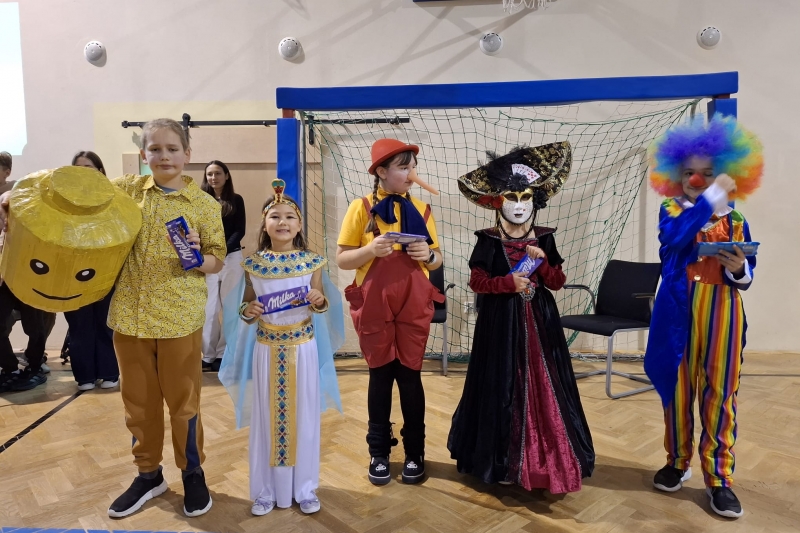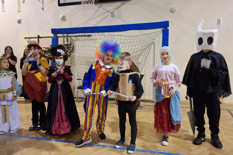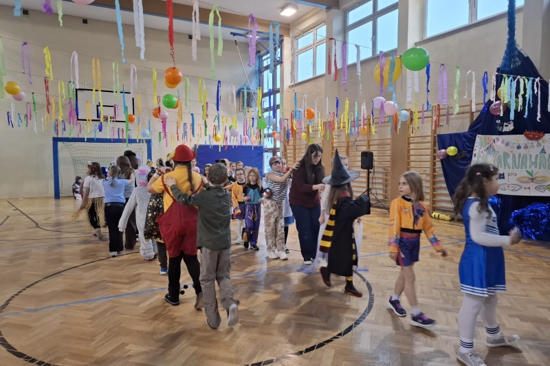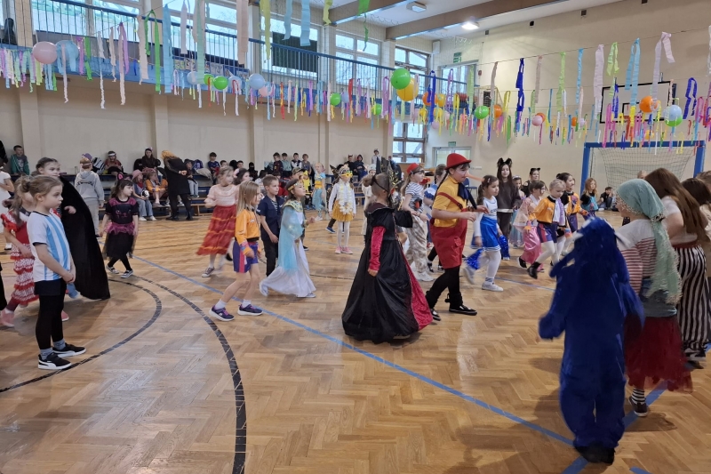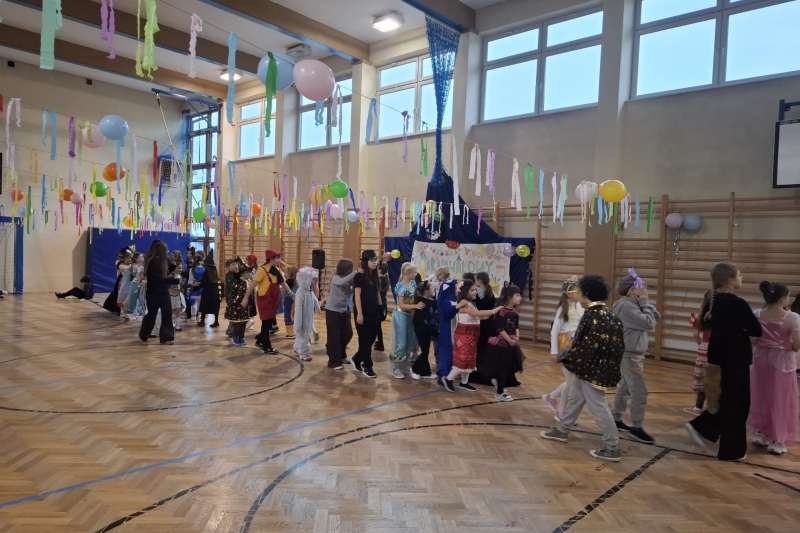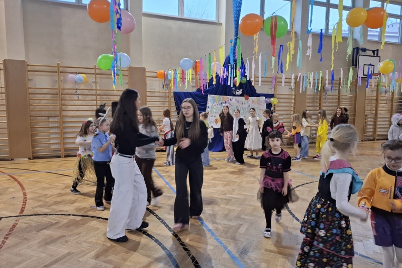 Na dyskotece z okazji karnawału bawiły się dzieci z klas 1-3, a potem klasy 4-8. O wystrój sali zadbali uczniowie ze Szkolnego Koła Wolontariatu, a Rada Rodziców o poczęstunek. Serdecznie dziękujemy!